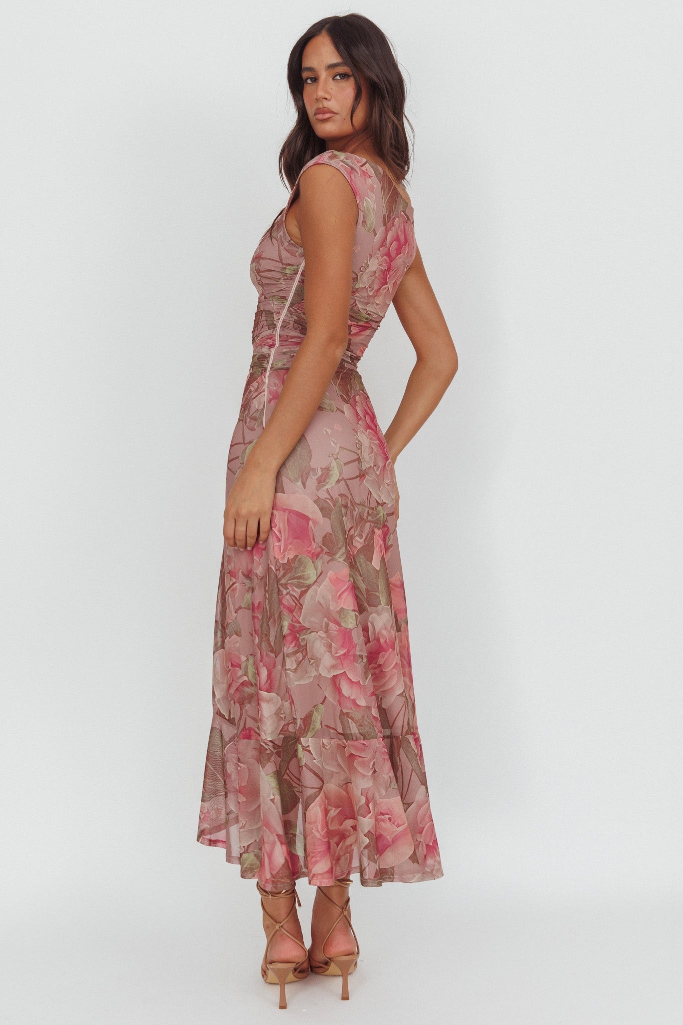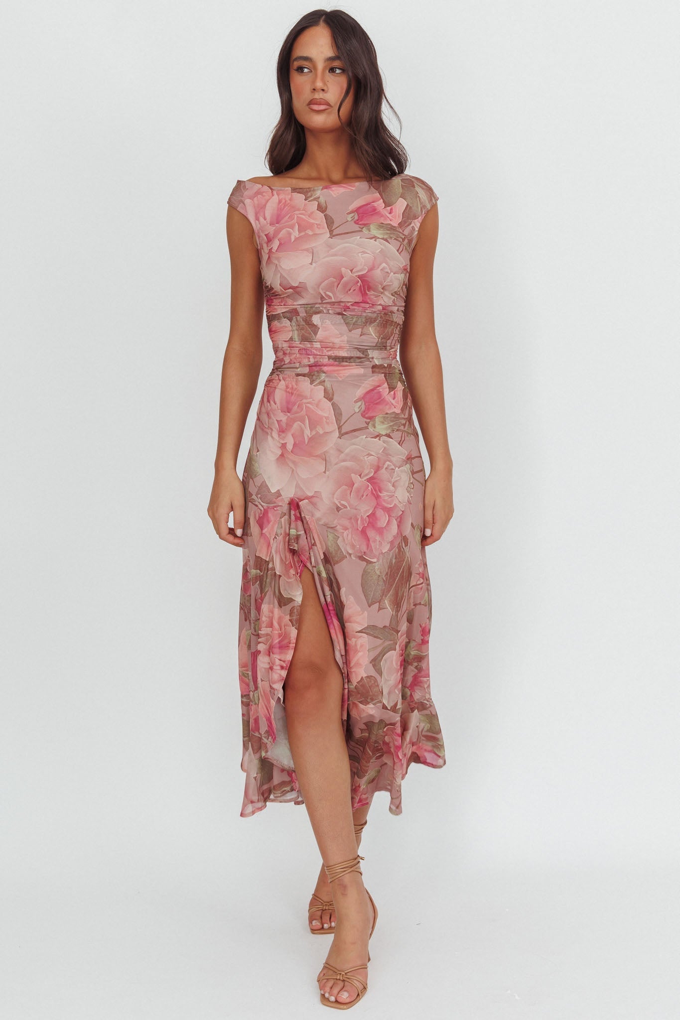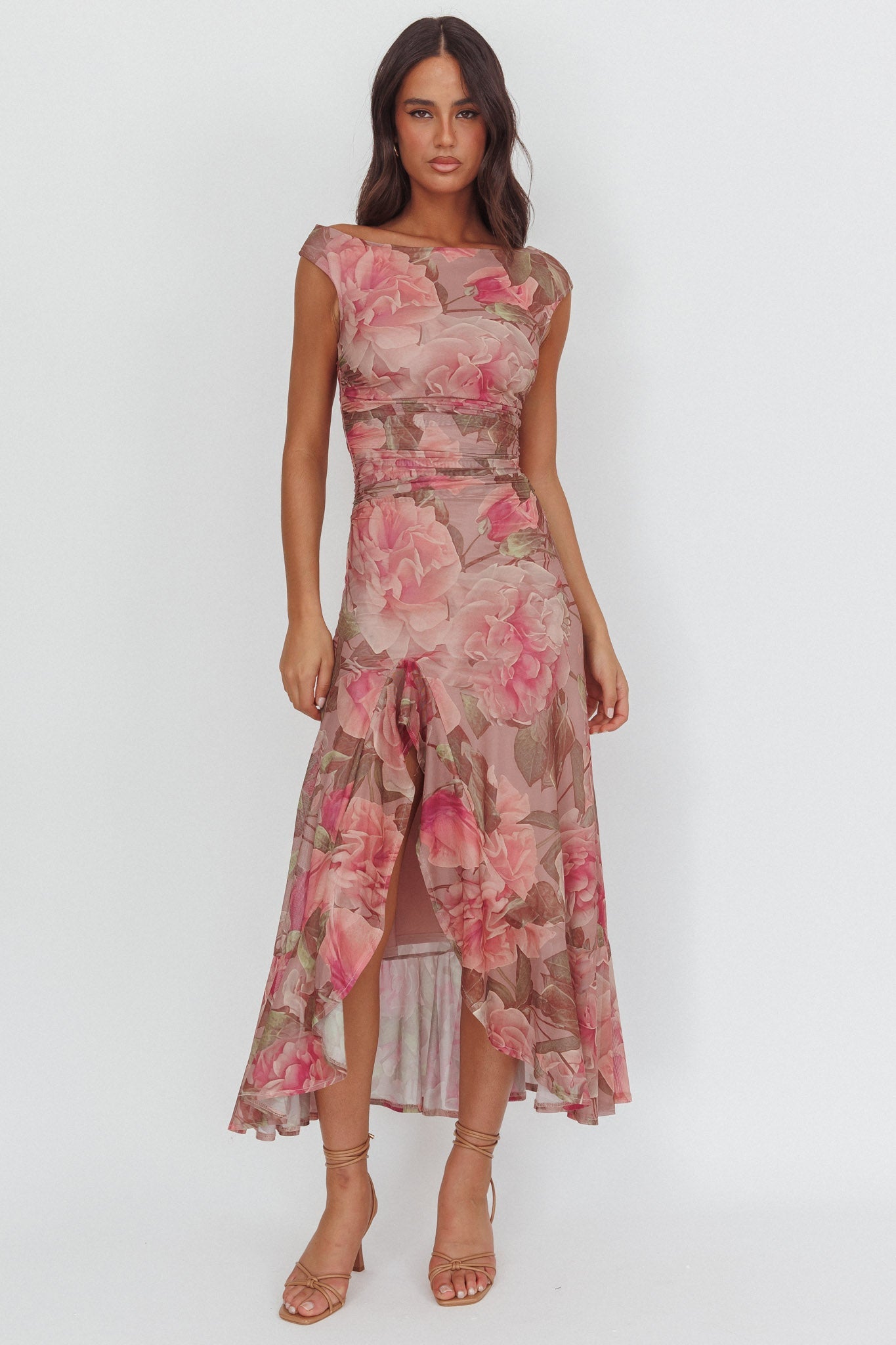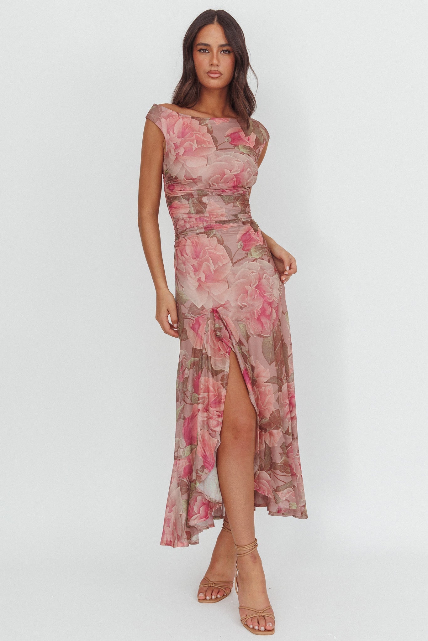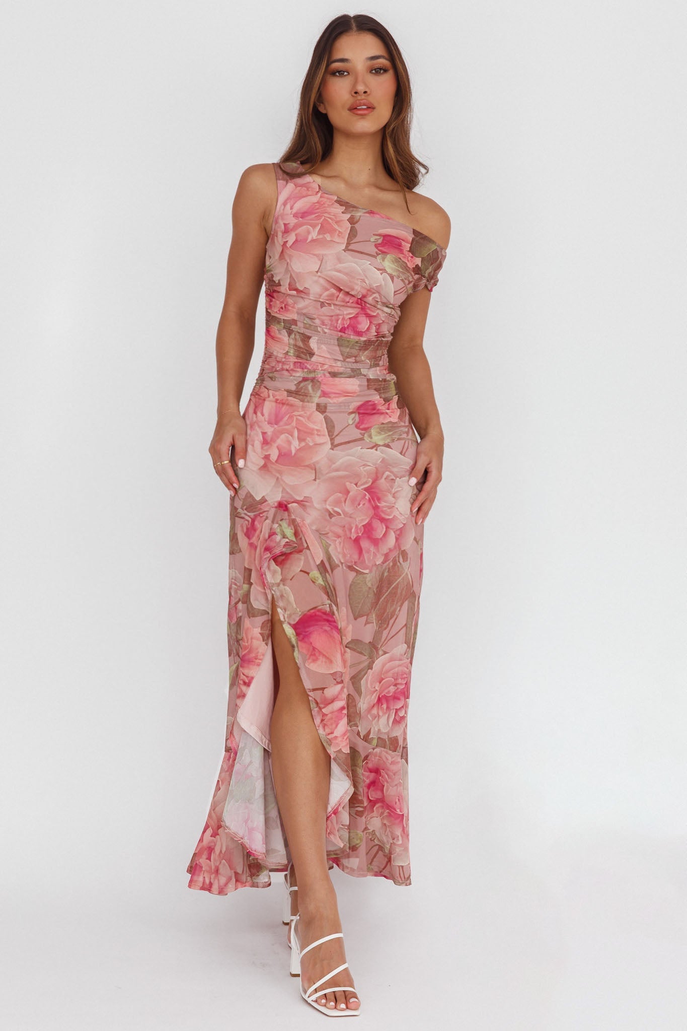 Abito lungo con scollo asimmetrico Moonlit Magic Floral Blush
