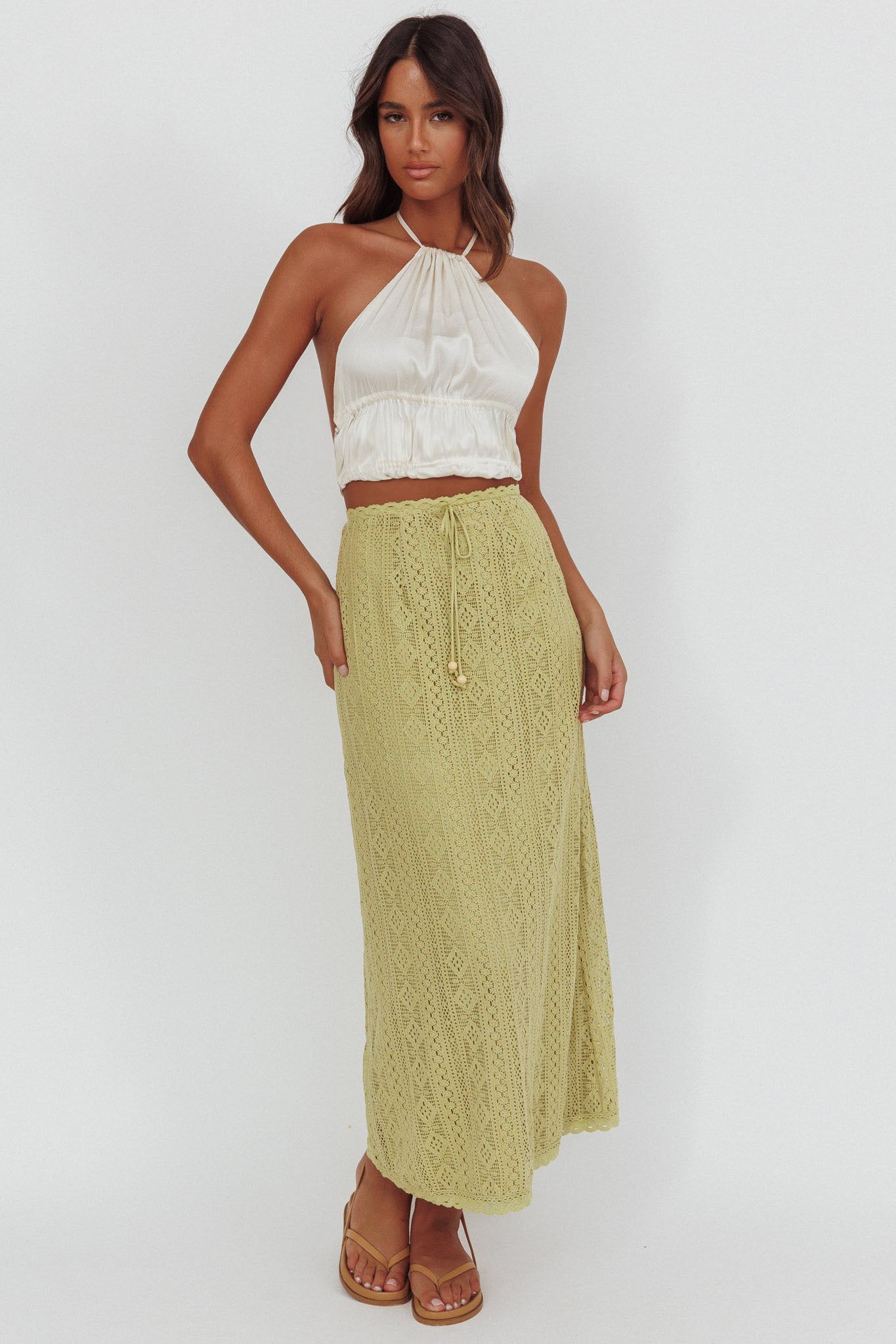 Trascorri la giornata con la nostra splendida gonna lunga Days Away. Siamo innamorate del suo grazioso pizzo all'uncinetto. È una vera bomba boho e noi la apprezziamo! Indossala nei weekend, passeggiando per il tuo mercatino vintage preferito, abbinata a una canotta, sandali e una tote bag per un look grazioso.