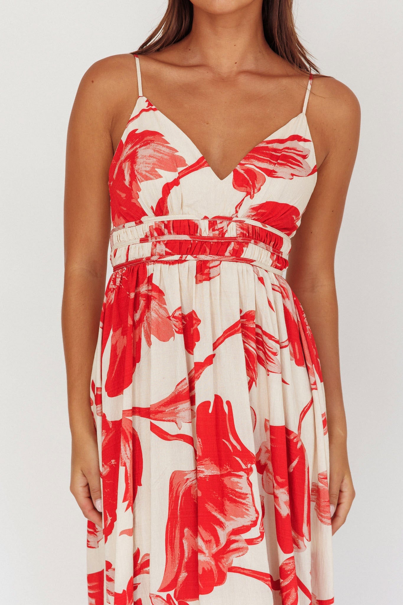 Sarai inondata di complimenti con il nostro splendido abito lungo "Sunny Afternoon". Presenta una deliziosa stampa floreale e una gonna ariosa, perfetta per volteggiare tutto il giorno. Indossalo per un primo appuntamento malizioso con la persona che ti piace, abbinato a tacchi con cinturino e una tote bag per un look indimenticabile.