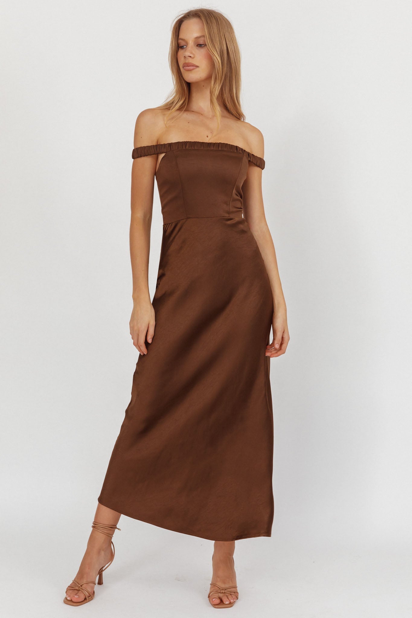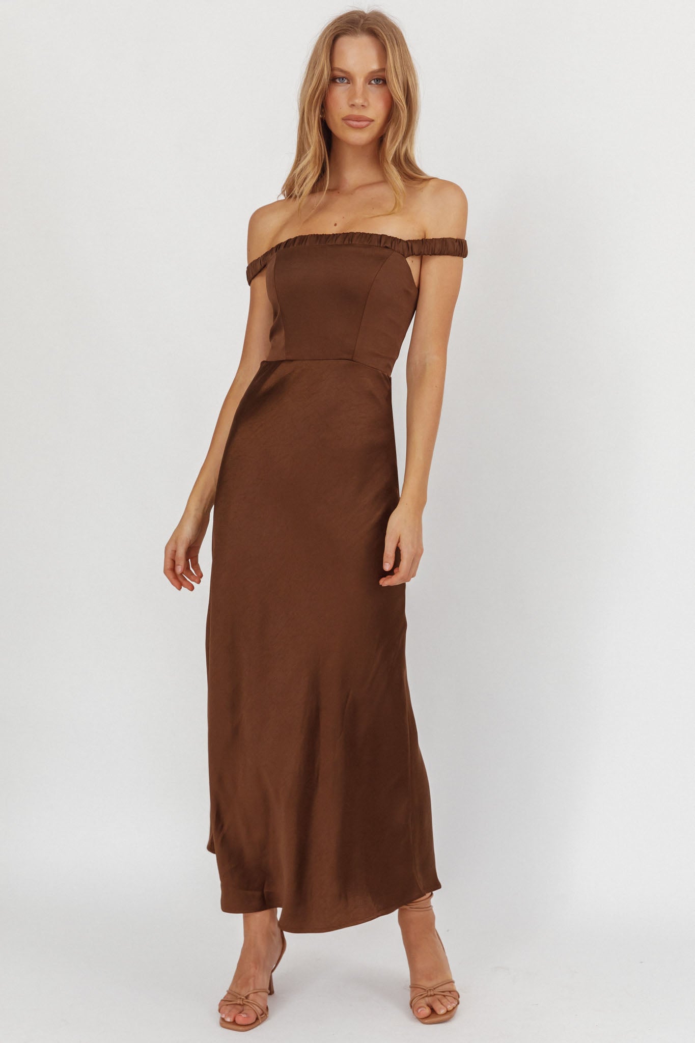 Ciao, bellezza! Con il nostro elegante abito lungo Cari, li farai fermare a bocca aperta. Realizzato in raso e con spalle scoperte, è perfetto per un matrimonio o un evento speciale. Abbinalo a tacchi con strass e una pochette per un look da urlo.