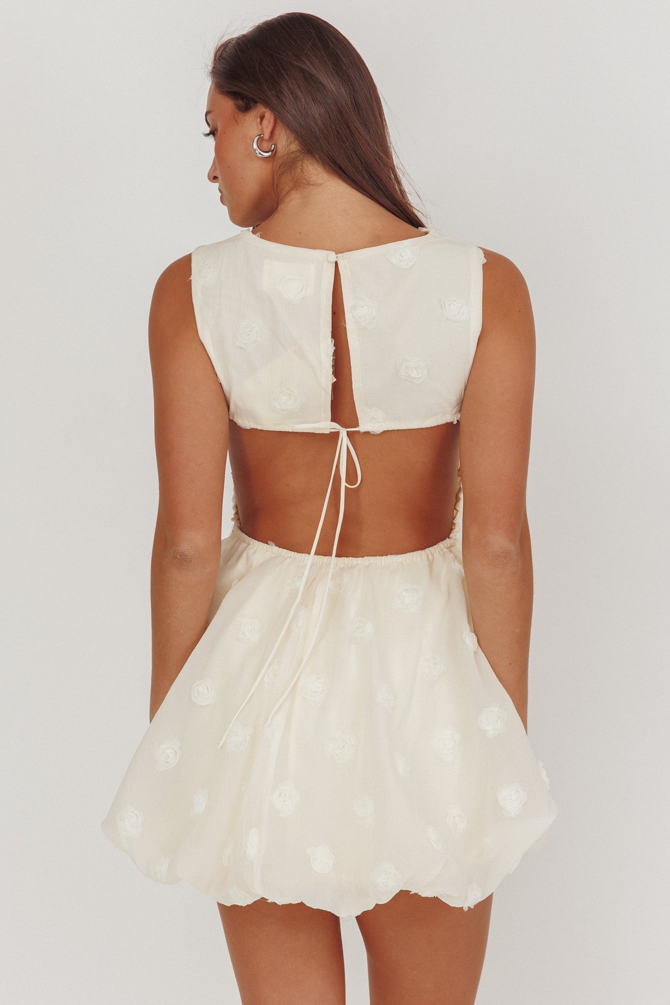 Vestito corto a palloncino con schiena scoperta Tealy, color crema