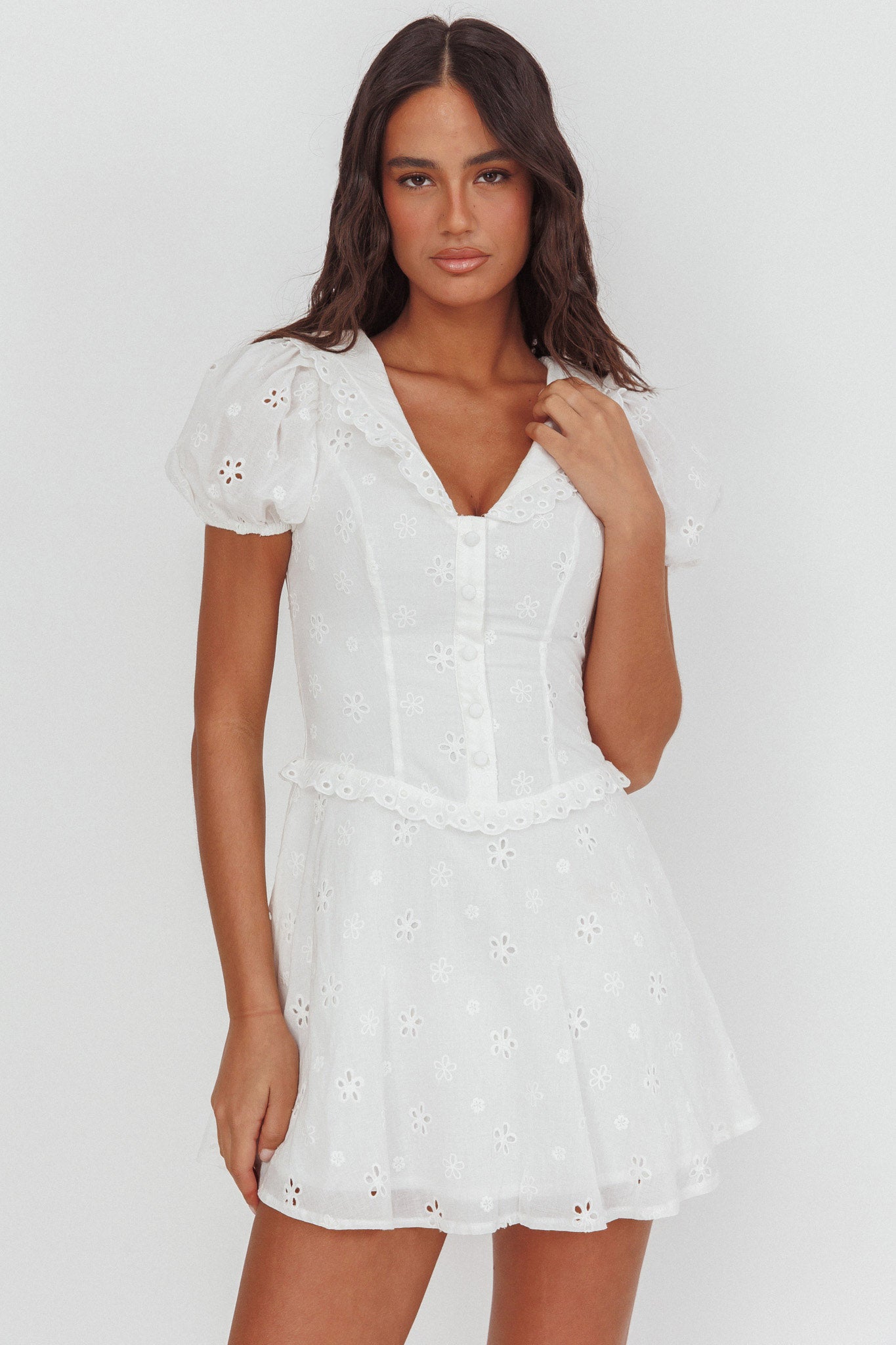 Aylin Mini abito con colletto e occhielli bianco
