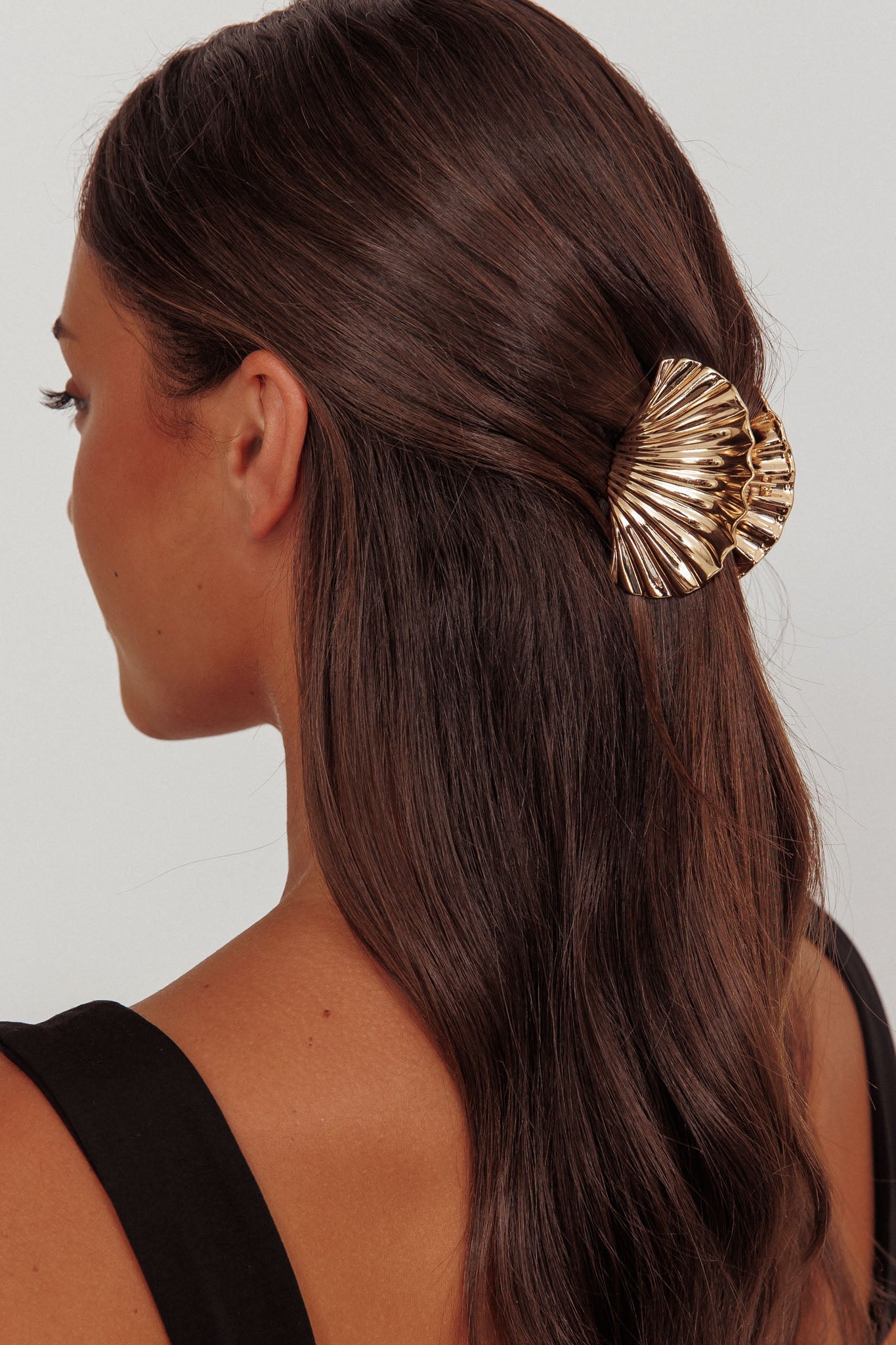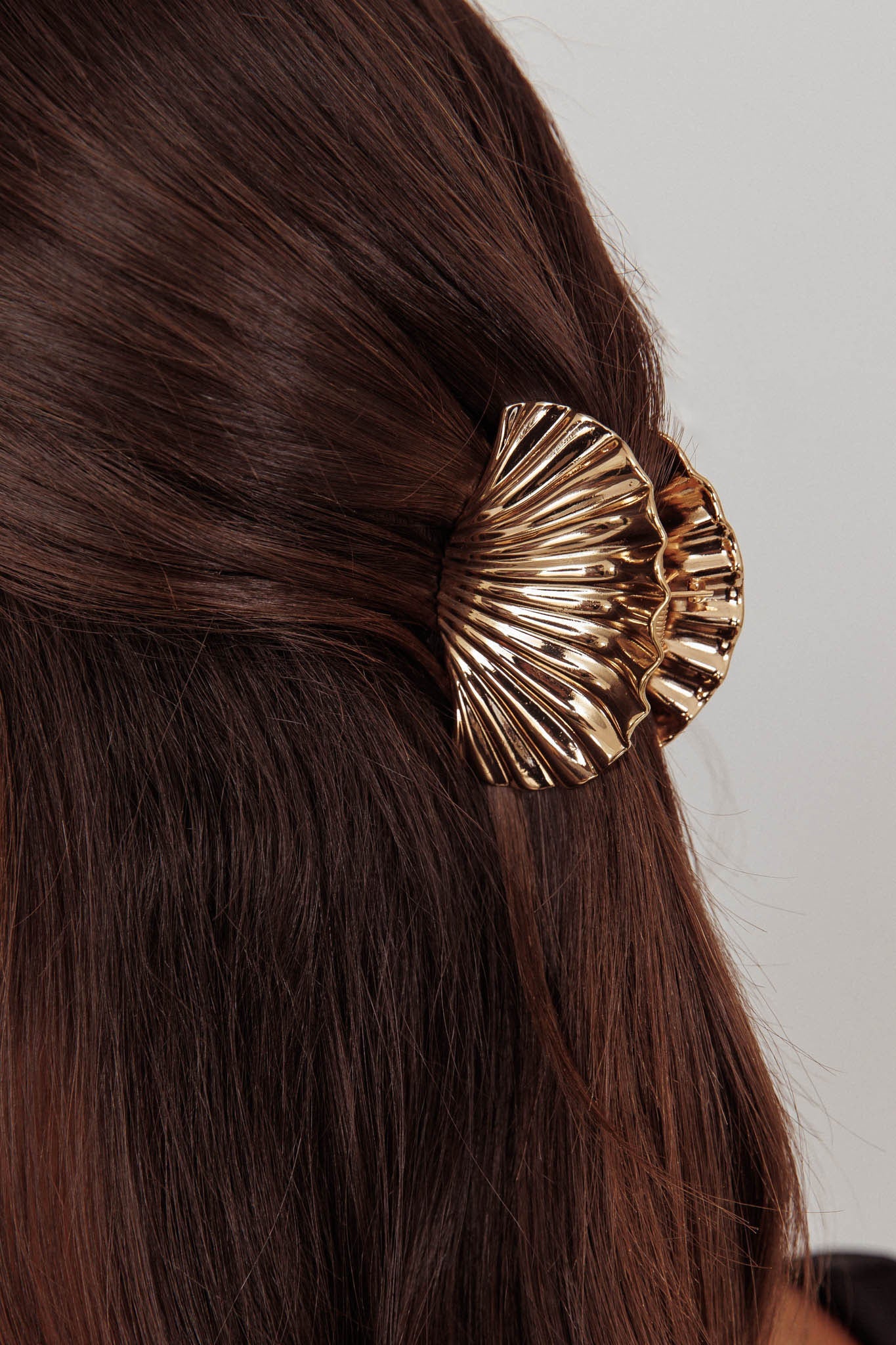 Ci siamo innamorate perdutamente del nostro splendido fermaglio per capelli Palm Beach. Con finitura dorata e design a conchiglia, è l'accessorio perfetto per farti sembrare una regina di stile, in qualsiasi occasione! Indossalo con il nostro abito Fortune per un look da It Girl.